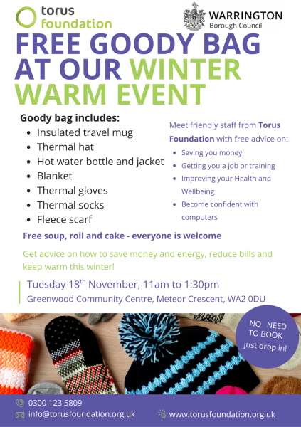 Come along to Greenwood Community Centre on Tuesday 18.11.2025 and receive a FREE Winter Warm Pack.